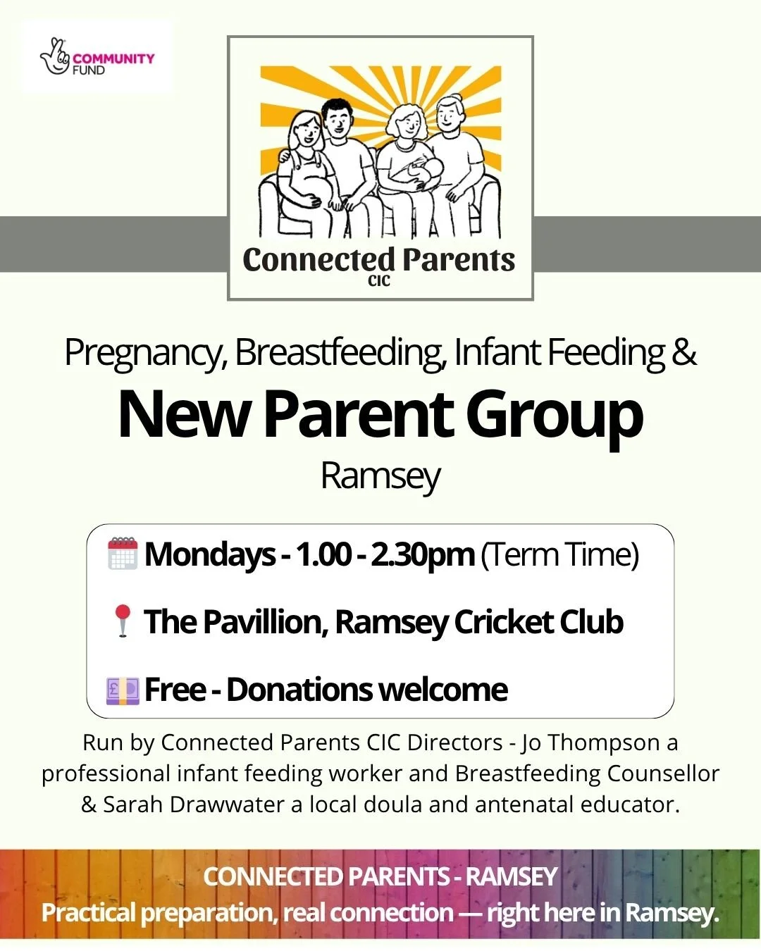 Alongside Jo, you’ll usually find Sarah Drawwater, a doula and antenatal educator who co-founded Connected Parents CIC to help families in Ramsey and the surrounding area feel better supported from pregnancy into parenthood.